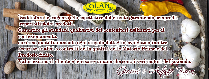 L’attenzione, in particolare, per il confezionamento delle spezie ed aromi fa della Gi.AN. Aromi l’azienda in cui la qualità e la genuinità del prodotto finito sono un valore aggiunto al prodotto commercializzato.